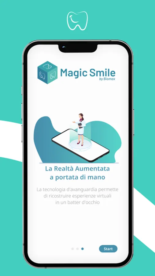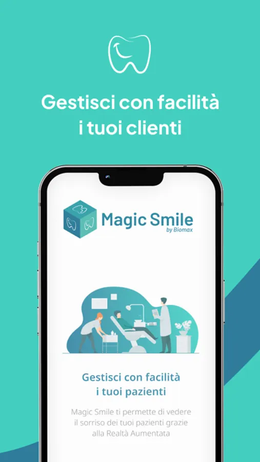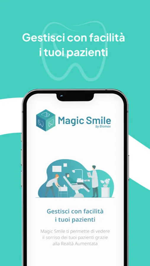 MagicSmile è un'applicazione innovativa che consente ai dentisti di mostrare ai loro pazienti una simulazione in 3D dei loro denti in realtà aumentata prima di eseguire un trattamento. Grazie all'utilizzo di una linguetta verde da inserire in bocca, i medici possono mostrare ai pazienti una vista realistica del risultato finale.