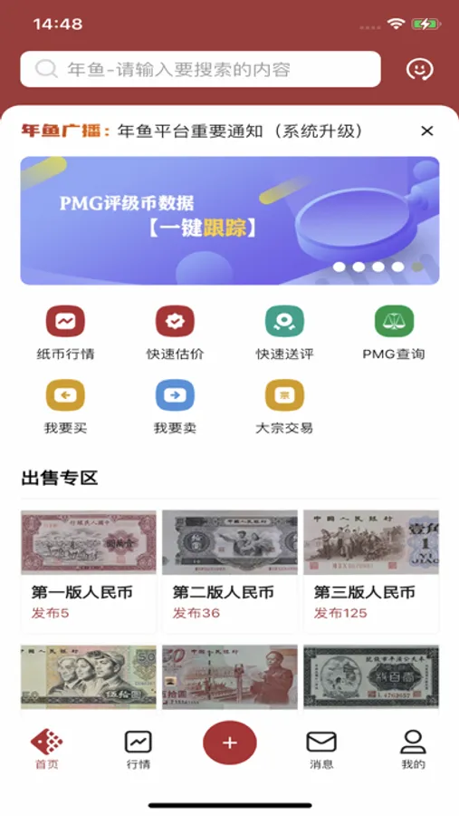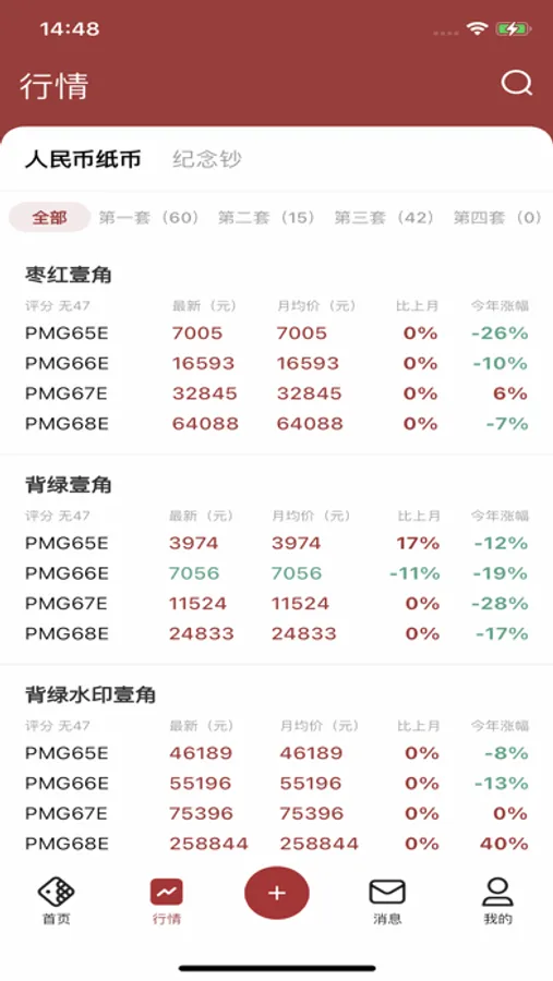 1、钱币行情:汇集退市纸币线下/线上网络成交数据,生成不同版本行情价格。