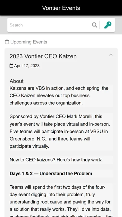 The Vontier Events app, powered by EventMobi, is your home for all Vontier corporate and operating company events. The app helps keep our events paperless, and serves up real time agendas, speaker bios, networking opportunities, and other important logistical information.