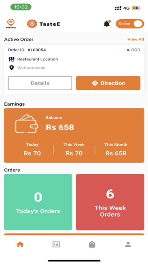 With TasteE Delivery, delivery men can easily track the progress of their delivery orders in real-time. The app provides a detailed overview of all delivery orders, including their status, estimated delivery time, and the delivery address.