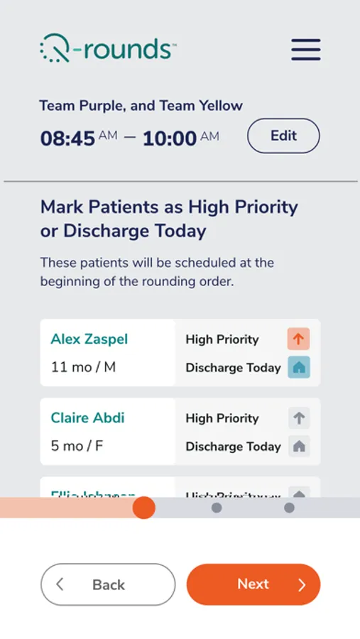 When will the doctor be here? Q-rounds™ provides the answer for families, nurses, and care teams with real-time updates sent by text message, ASCOM notifications, and rounding schedules pushed into patients' Epic electronic health records. With an easy-to-implement and easy-to-use interface, healthcare systems can increase provider and nurse efficiency and patient satisfaction scores. Q-rounds™ can positively impact point of care and make equitable healthcare experience a reality.