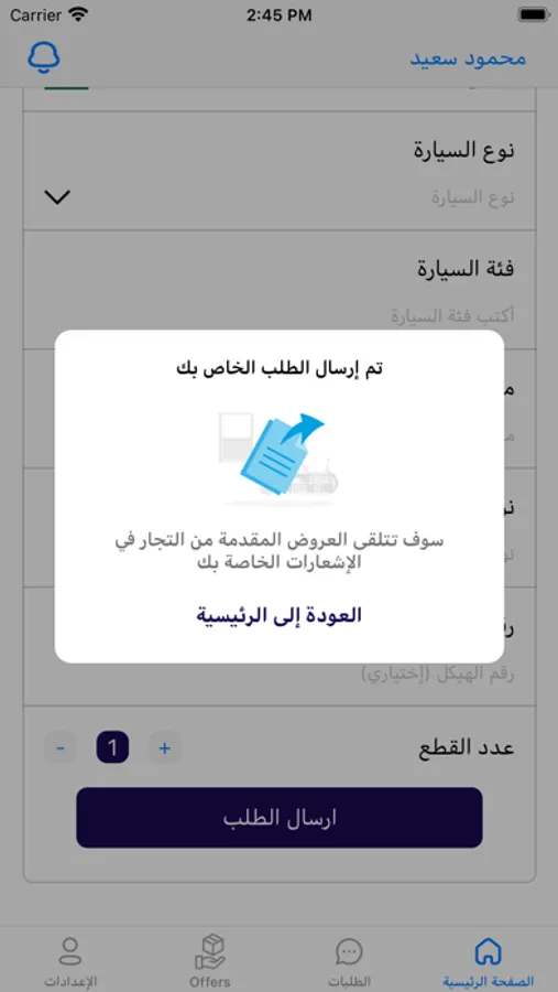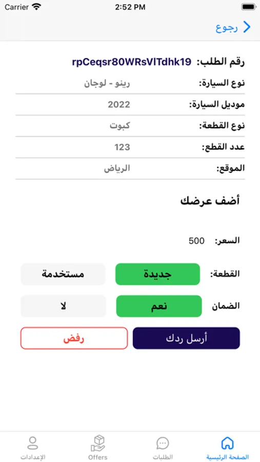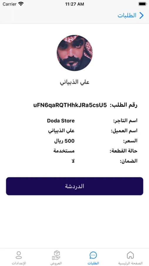 - تطبيق قطع غيار سيارات يربط مابين تجار قطع الغيار بالعملاء بشكل مباشر من خلال رسائل على التطبيق تحتوى على مواصفات القطعة المطلوبه والاسعار والضمان بين الطرفين وتقديم العرض الافضل للعميل من التاجر سوء فرد - او محل قطع غيار جديد - او تشاليح قطع الغيار المستخدمه ويتم فيها تحديد الاسعار وطرق الدفع والتوصيل مابينهما من خلال الرسائل المباشره .
