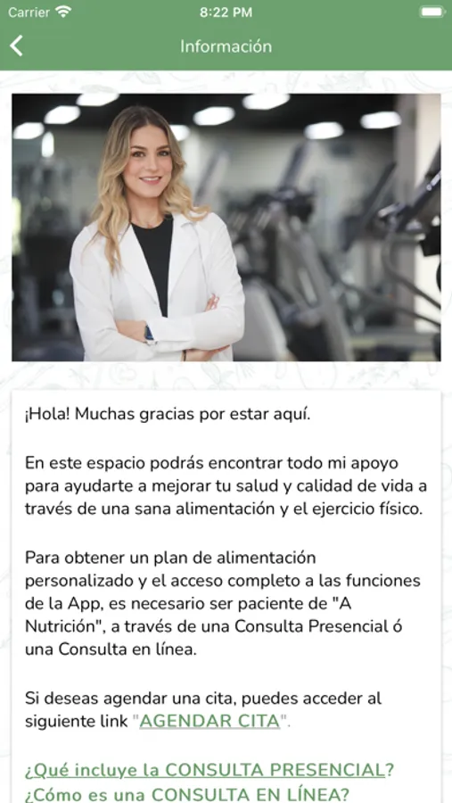 En esta aplicación encontrarás tu plan de alimentación personalizado, tus resultados del Análisis de Composición Corporal (exclusivo de la consulta presencial), recetas compatibles con tu plan, rutinas de entrenamiento y guía de restaurantes.