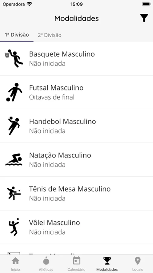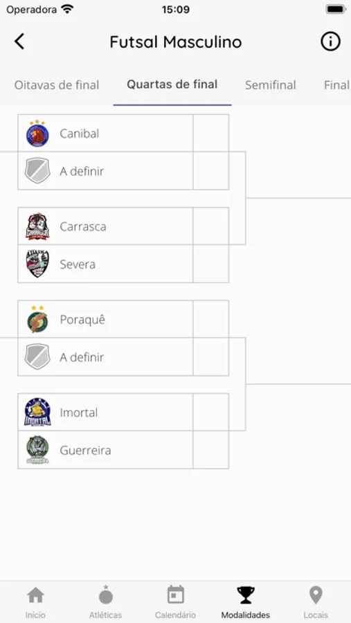 - Ver o calendário de jogos da competição, chaveamento das modalidades e classificações