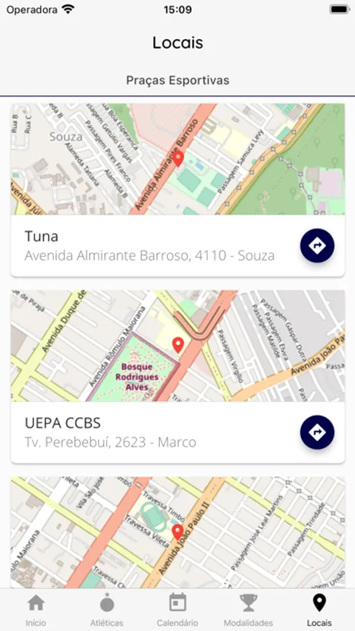 - Consultar os locais de jogos e obter rotas para eles