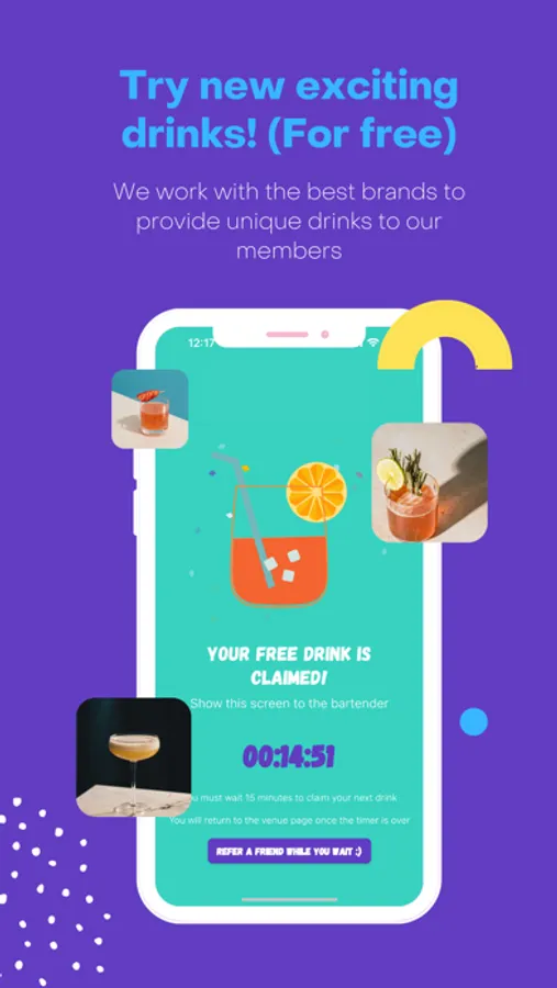 The bars get revealed through the app at a random time between 5-7pm, so be quick to get to the bar to claim your drinks as they don't last forever :)