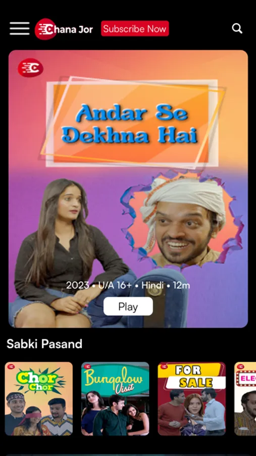 Chana Jor is an on-demand youth oriented comedy video streaming app that promises you non-stop laughter and entertainment.