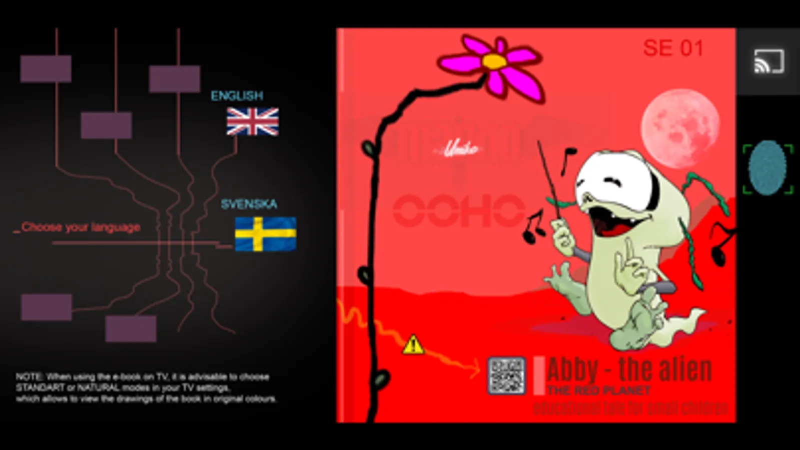 It is recommended to stream the book from your phone to the TV by using ‘Screen Mirroring’. The app can also be used on tablets.