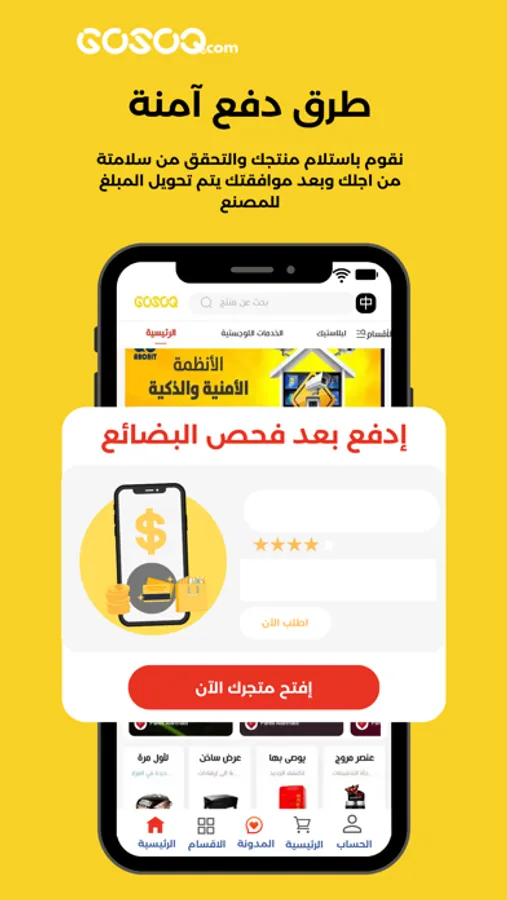 طرق دفع آمنة وسريعة: تقدم GOSOQ خدمات الدفع بينك وبين المصنع او المورد بكل امان ، وتعمل على حماية الاطراف التجارية من عمليات الاحتيال وبكل امانة وثقة.