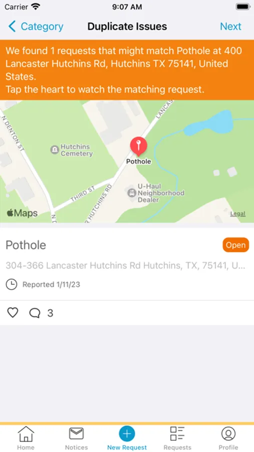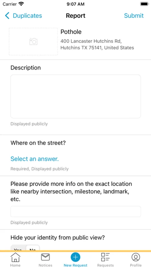 The public can easily report non-emergency issues like potholes, graffiti, and possible code violations. You may attach a photo of the problem, identify the exact location (either manually or through GPS), and submit the information to City staff who will address the concern. Users with accounts can track status updates to see the City’s response, as well as follow and comment on other submissions.