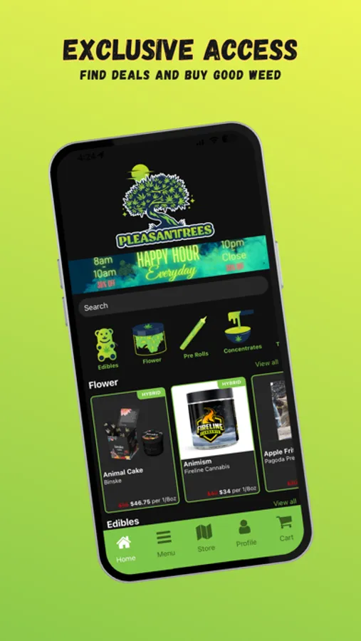 At PleasantTrees, we prioritize customer satisfaction and strive to provide a seamless cannabis shopping experience. Download our app today and experience the convenience of premium cannabis at your fingertips!