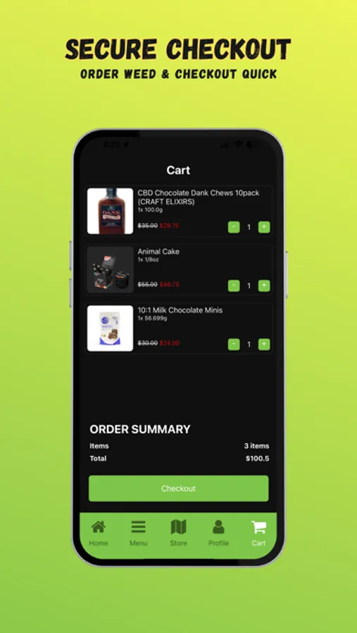 - Browse and order from our wide selection of premium cannabis products with just a few taps. With our easy-to-use interface, you can effortlessly explore various strains, edibles, and accessories to suit your preferences.