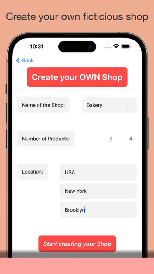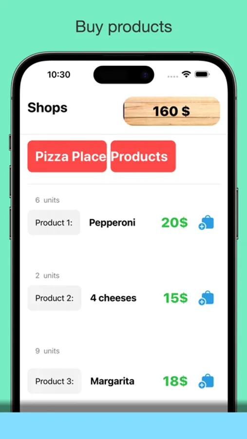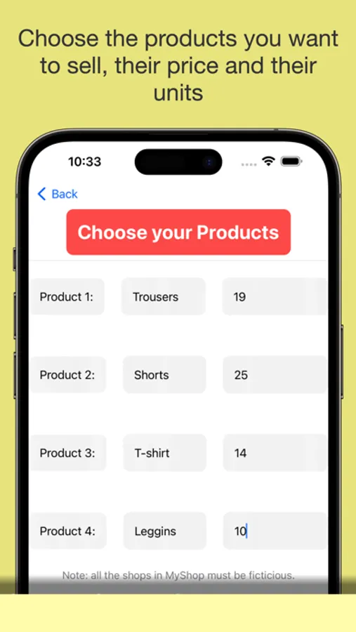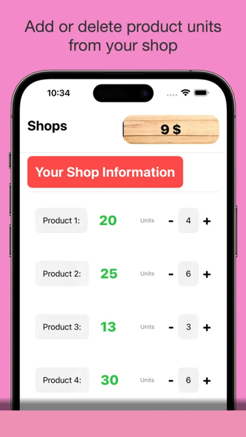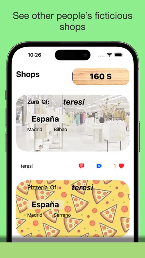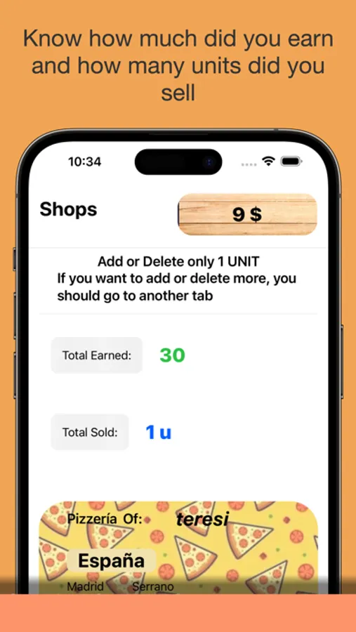 Create Imaginary shops with MyOwnShop. As well as creating your own shop, you can also buy products (with fictitious money) from other user's shops. To know how's your shop going, you need to tap on your shop. There you can sell more (or less) units of each product and check other data.