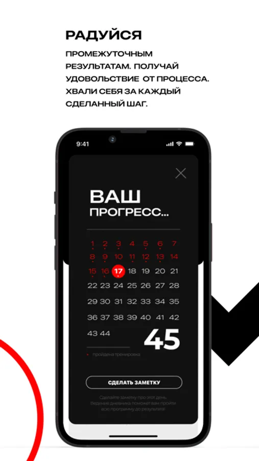 - Если не выполнишь все пять заданий до 0:00, начинай программу сначала - с первого дня. Приложение напомнит об этом.
