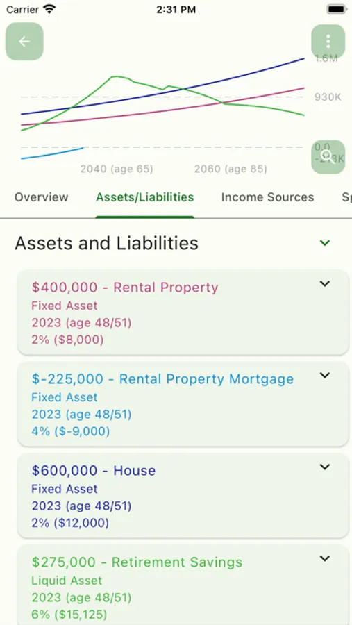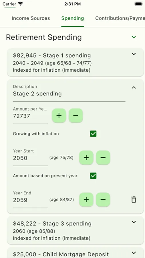 With the App, you can easily input the basic variables - assets, income, spending, contributions - in such a way that you can develop different scenarios and confidently organize your retirement plans. This type of real-time, accurate planning will help maintain the quality of life you desire for as long as you plan to live, while simultaneously giving you the confidence that your family and estate will be cared for by the assets that you leave behind.