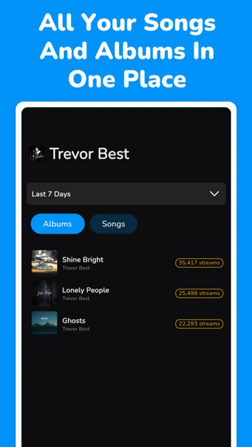 • Track individual album and song statistics in real time.