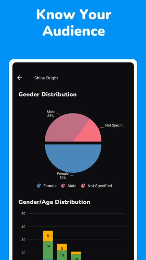 • Get insights of your streams and demographics of your listeners including gender, gender/age distribution, and which Playary app platform they use to listen your music.