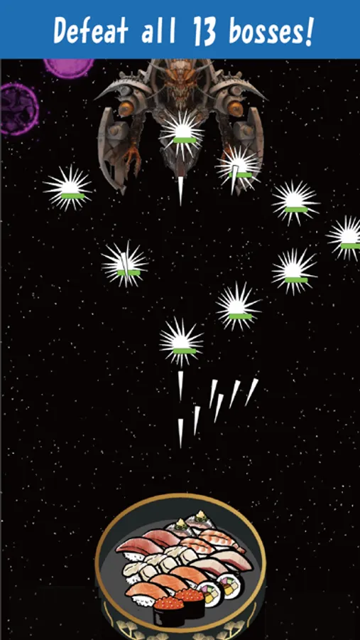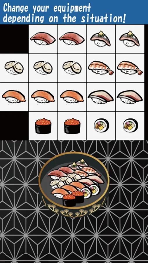 Tuna, jack mackerel, scallop, shrimp, salmon, salmon roe, burrito... Use a variety of ingredients to win the space war!