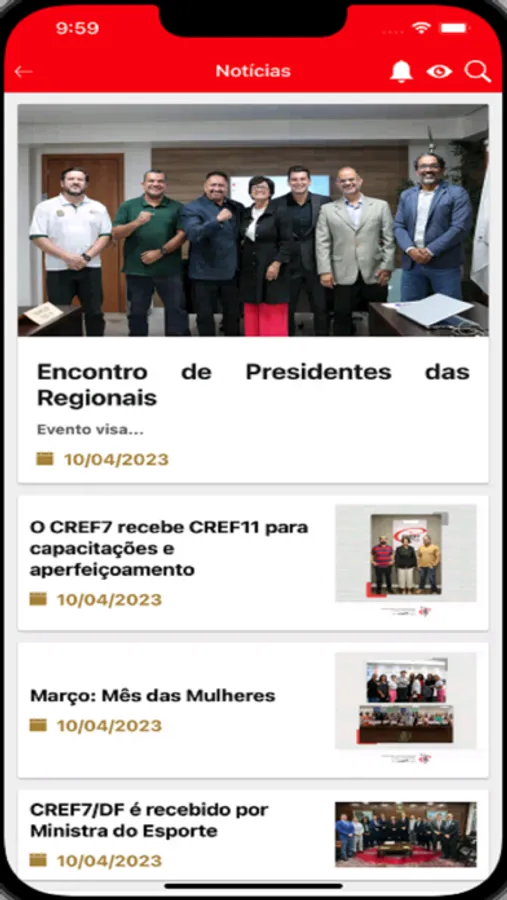 Aplicativo do CREF7/DF contendo notícias do conselho, a possibilidade de consultar e alterar dados cadastrais e realizar pagamento das anuidades do conselho.