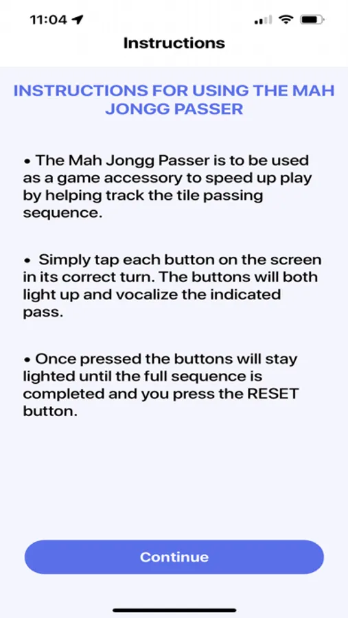 Mah Jongg Passer is the easy way to keep track of your tile passing status - your iPhone or iPad will talk you through the process so you don't forget where you left off. No more arguing over which pass you're up to. Less fighting and more Mah Jongg!