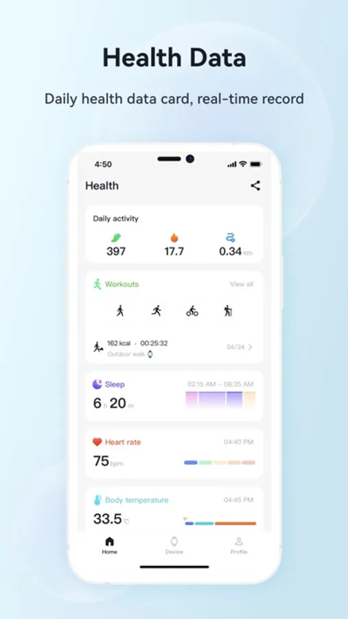 G Band is a professional and easy-to-use health assistant to help you review your health data and manage smart wearable device.