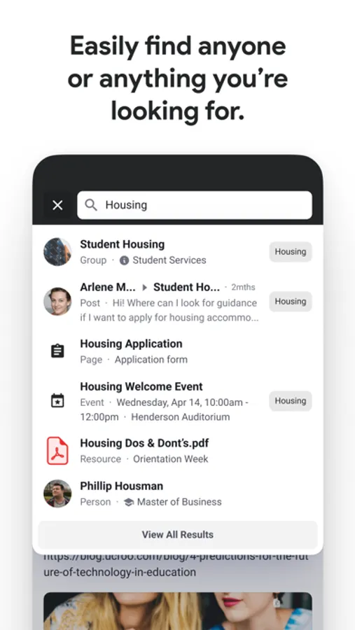 - Search staff, peers, systems, groups, posts, resources and more.