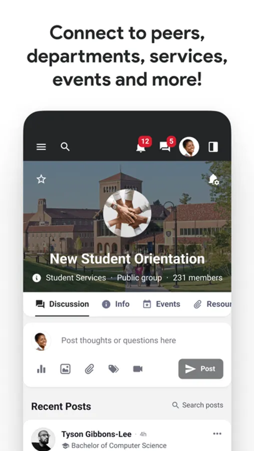 - Find and join campus events.