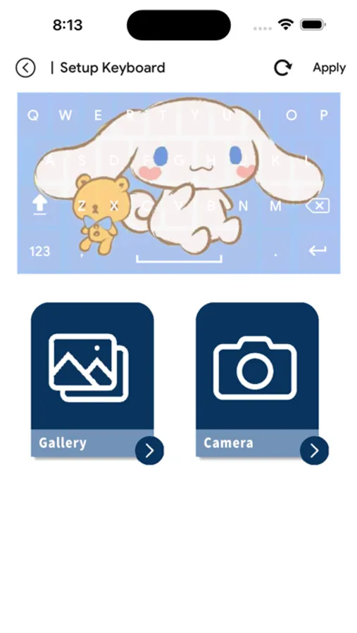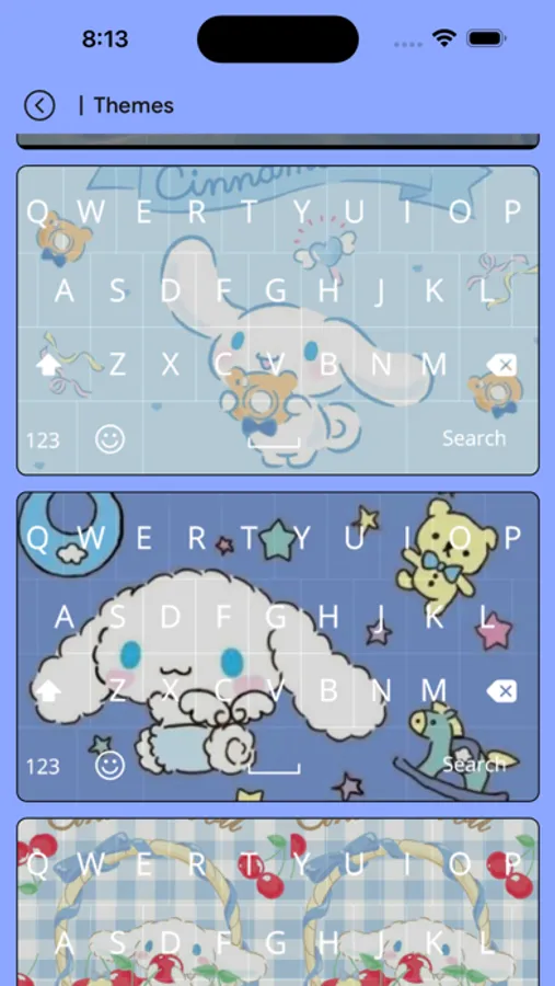 - 3. Go to your keyboard, tap and hold the Globe button, Select "Keyboard Themes —Cinnamoroll Characters - theme".