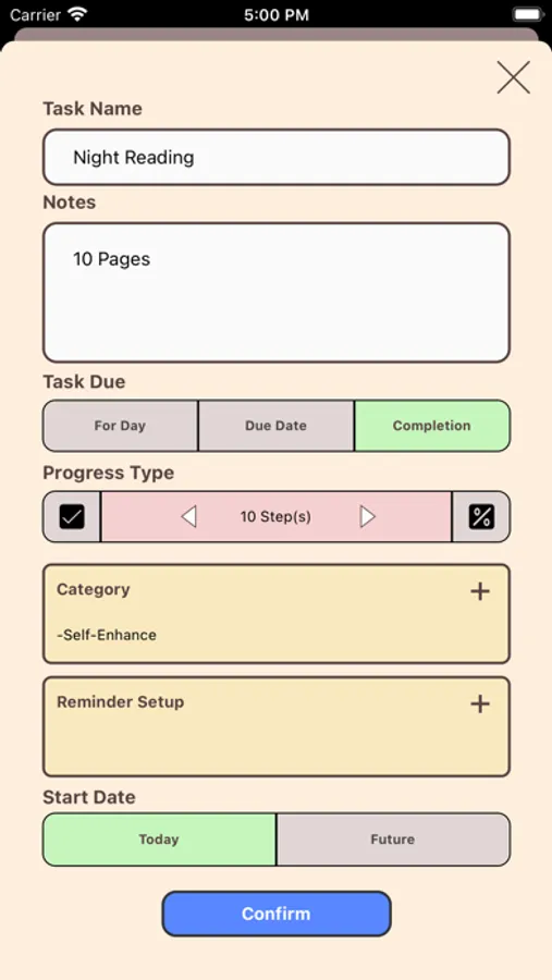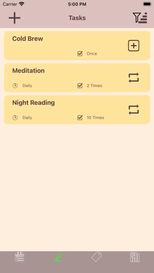 * Create Daily-Repeating Tasks as Habit Building reminder