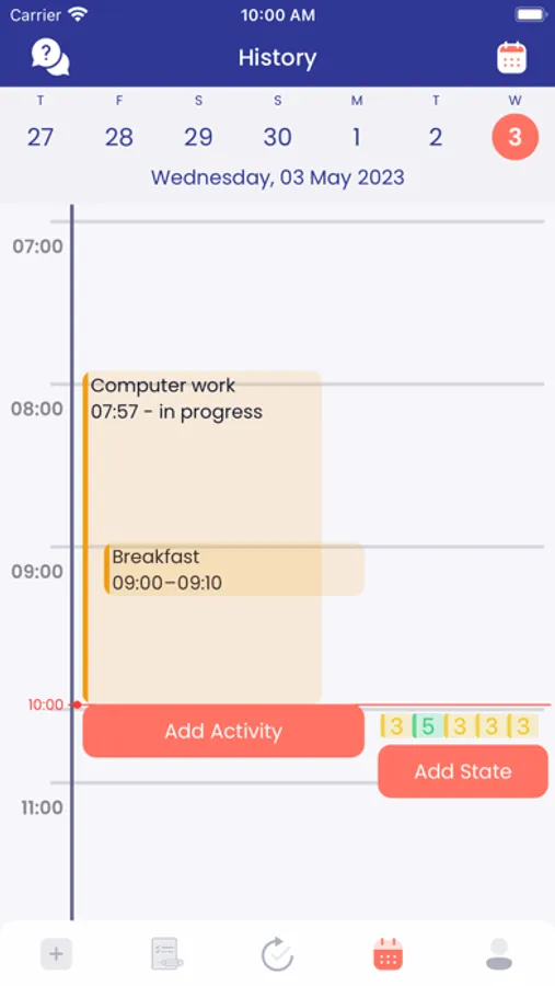 Our app is a handy tool for those who want to track their activity and health. With it, you can keep a diary of your activities, as well as track changes in the physical, intellectual and mental state.