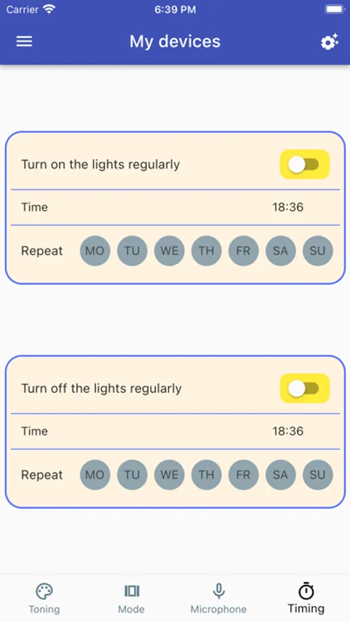 The lamp is controlled via Bluetooth and can be changed in terms of colour, brightness, rhythm mode and timer on/off.