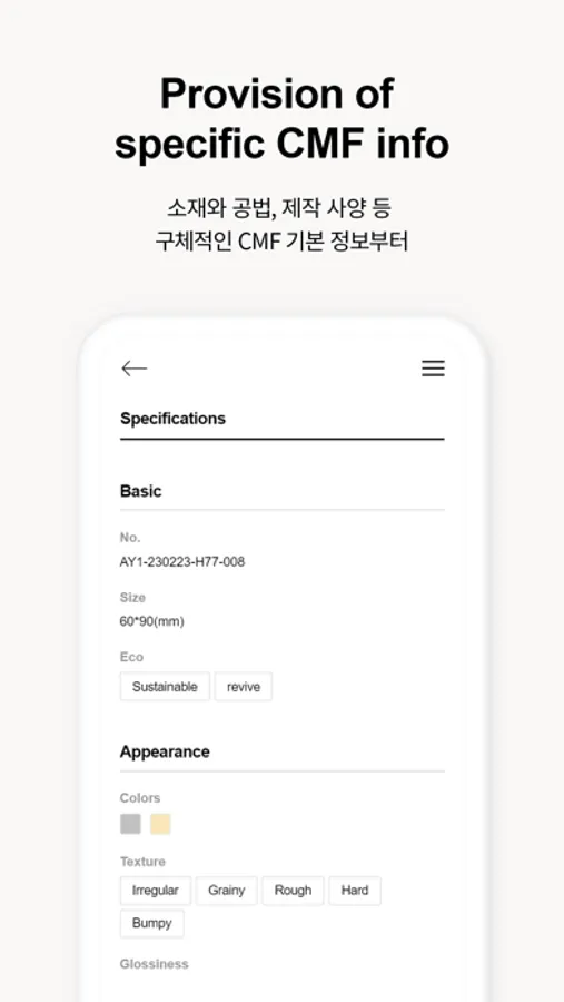 - Detailed pages provide CMF info needed for product development and design, including production specifications