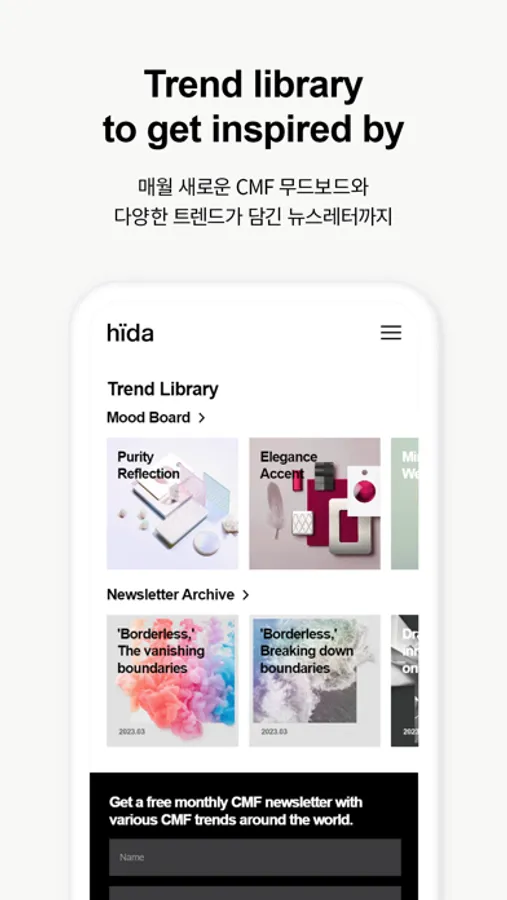 with monthly new themes and CMF insights infused with various trends. Get a variety of insights with hida's unique content.