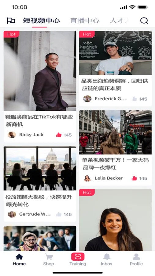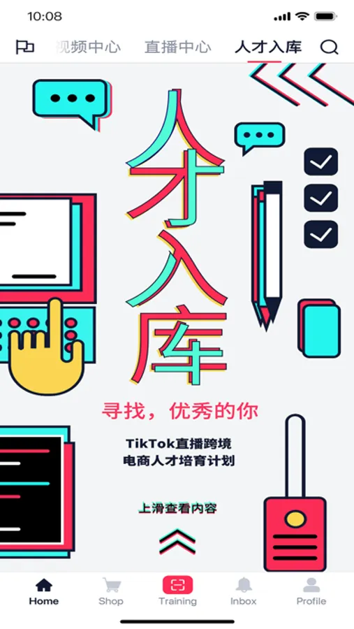 配置短视频中心、直播中心、短视频实训、模拟直播实训、TikTok小店、消息中心、人才入库、个人中心等功能模块,涵盖TikTok直播运营流程实操训练,并支持学生互评、答案解析、教师批阅等评分功能;配置TikTok直播跨境电商人才培育计划,学生主播可申请加入TikTok官方人才库。