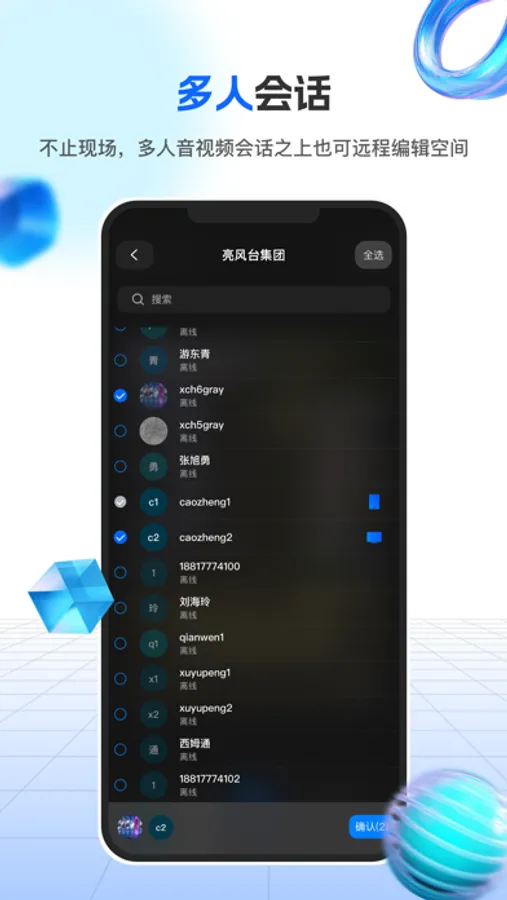 亮风台出品的AR空间协作工具,可以快速的创建空间、编辑空间并多人在空间中互动和协作,可跨多终端使用,支持音视频协作和私有化部署。可提供开发工具包。