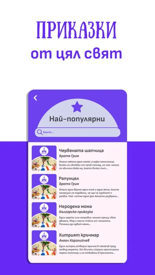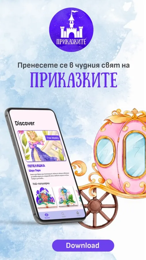 Изтеглете приложението ПРИКАЗКИТЕ безплатно днес и се пренесете в чудния свят на детските приказки!