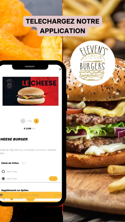 Où que vous soyez, avec l'application Eleven's Burger, vous pouvez commander sans souci parmi la vaste gamme.
