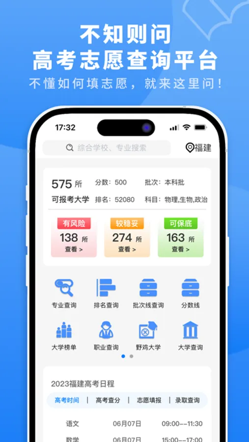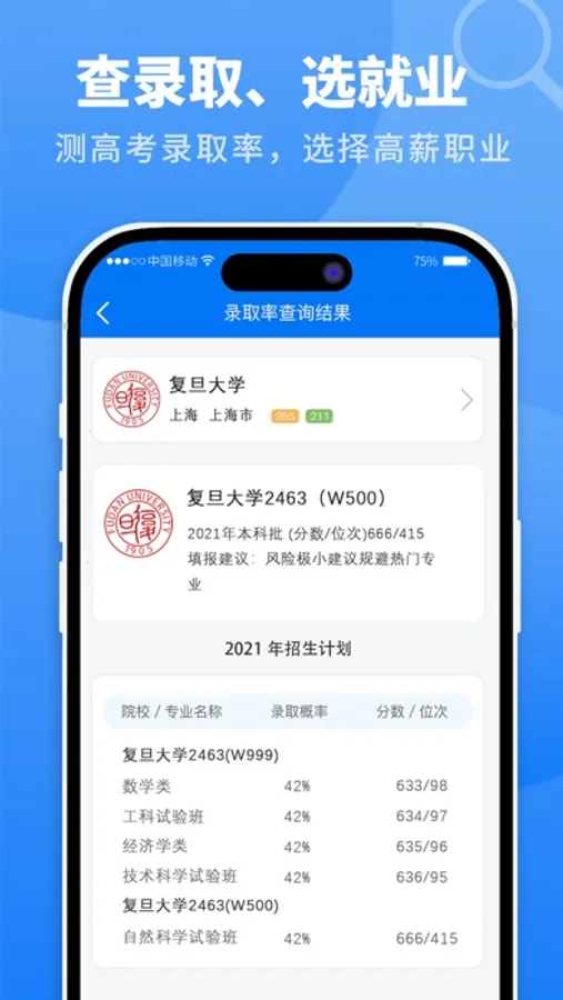 【录取概率评测】基于考生填写的数据和意向院校,app可测算出大学专业的录取概率,帮助考生快速锁定大学和专业