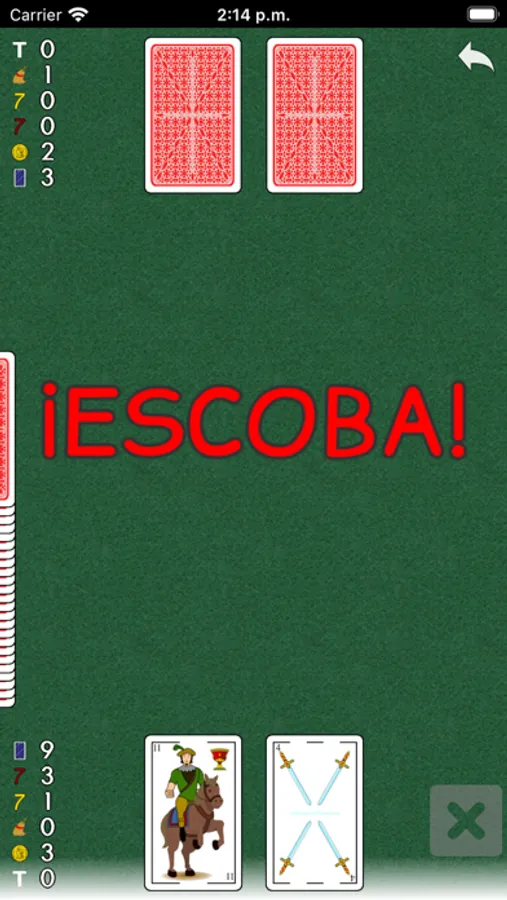 • Reconoce escobas de mano y combinaciones no barridas por el oponente.