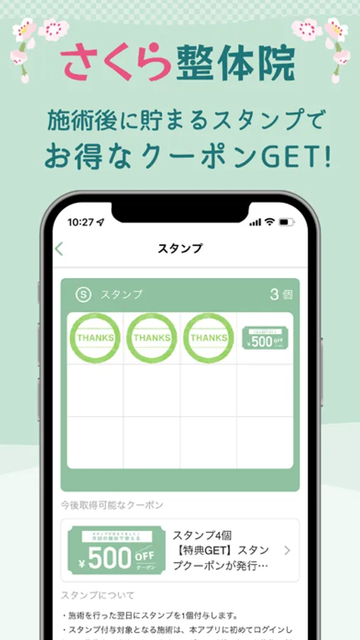 ご来店スタンプをためるとお得なクーポンが発行されます(ご利用条件がある場合がございます)