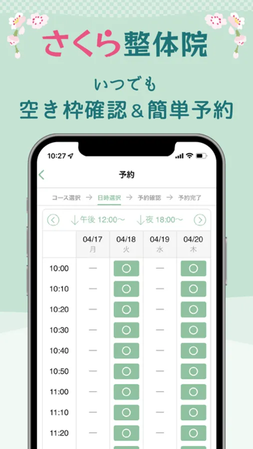 いつでもお手元のスマートフォンからご希望のお時間帯のチェック・ご予約が可能です。