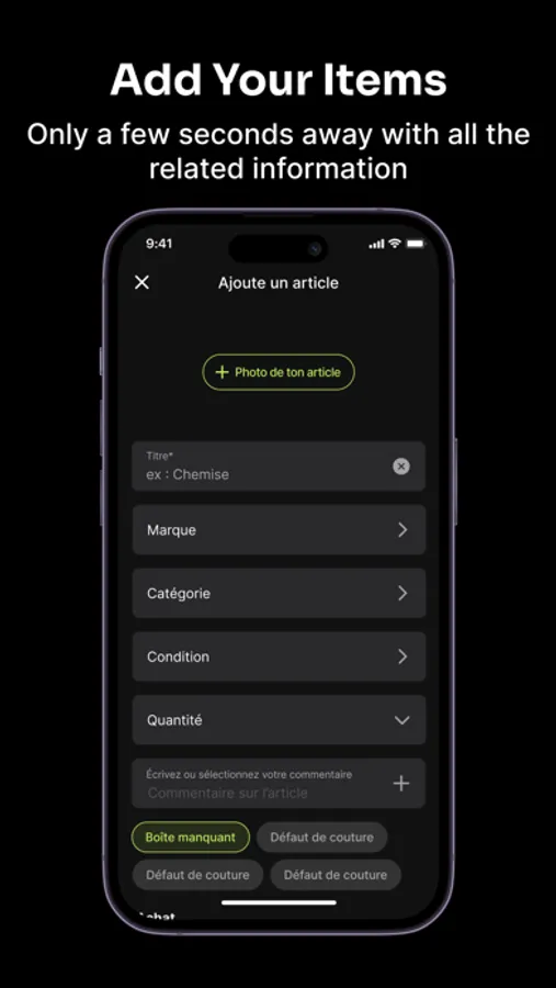 You'll never have to struggle again to create descriptions for Vinted, Depop, VestiaireCo and other resale sites. Thanks to our automatic description generation tool, copy and paste directly onto your resale sites.
