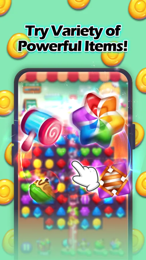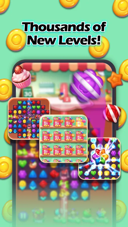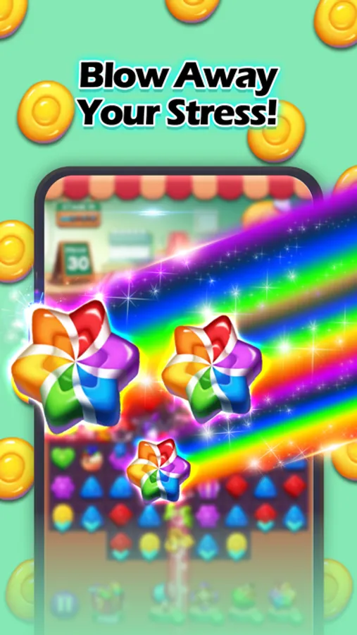 A SWEET MATCH 3 PUZZLE GAME FEATURING COLORFUL CANDY!
