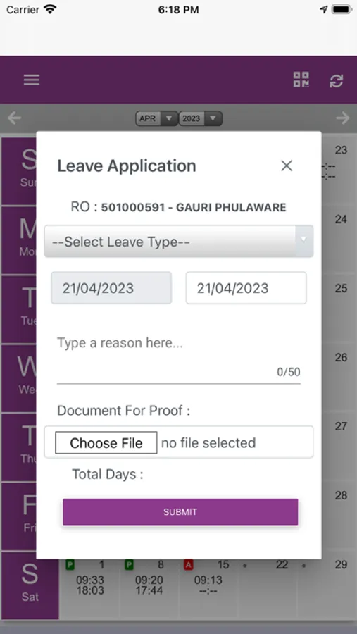 - Mark Day IN/OUT from mobile
