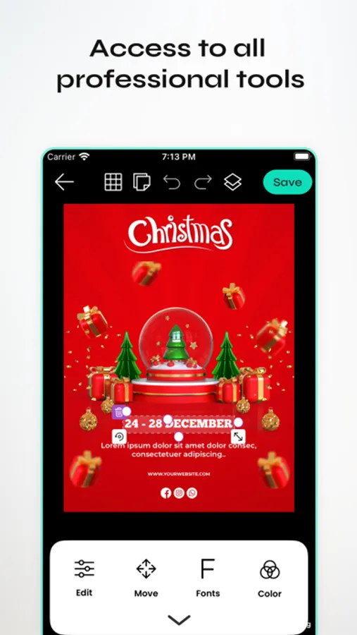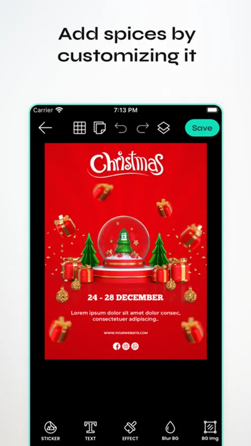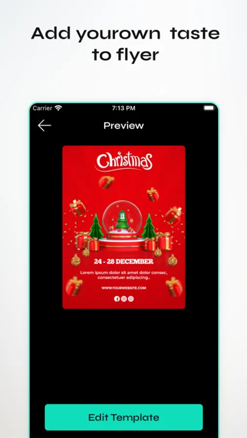 Once you've created your perfect flyer, you can easily save it to your photos and share it on social media platforms like Facebook, WhatsApp, and Instagram with just a tap.