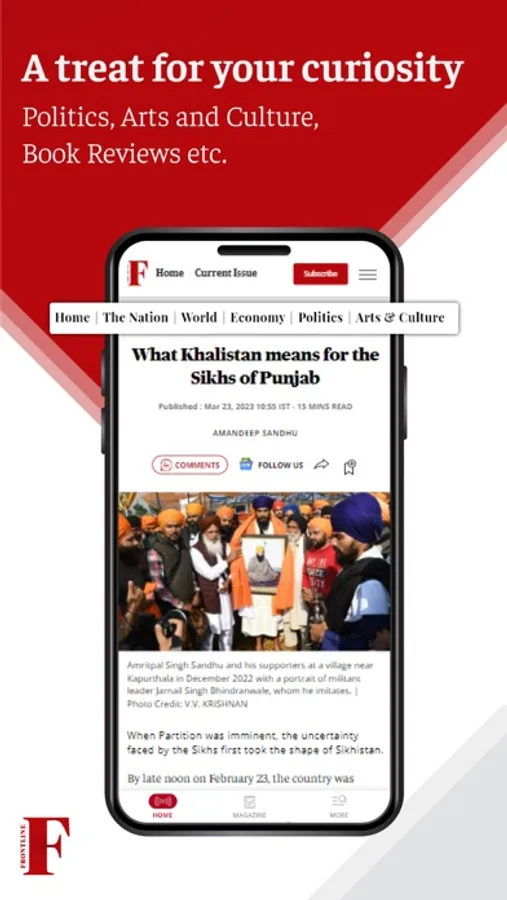 With the new Frontline app, subscribed users of Frontline Website can now access the best of long-form journalism on topics that matter to society and are impacting society in some way. This includes Politics, Economy, World Affairs, Environment, Arts & Culture, Social Issues, Science & Technology, Books, Health, Literature & Cinema, and Travel.