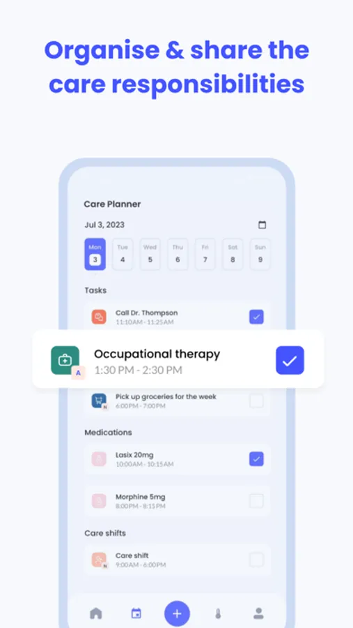 Independently, or with the support of your care team, you can organize care and keep track of different tasks with a shared care planner.
