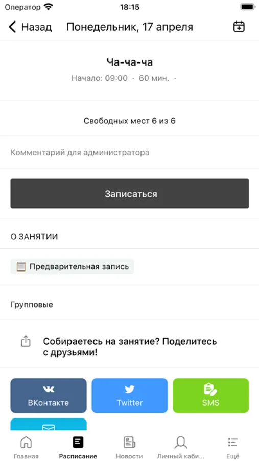 С помощью приложения вы можете следить за новостями, расписанием клуба, самостоятельно записываться на занятия, оперативно получать информацию об изменениях в расписании и специальных предложениях.