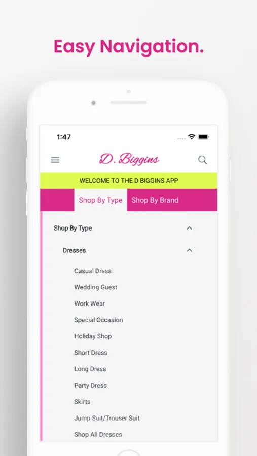 Your favourite online destination for gorgeous casual and occasion wear, and a fab selection of shoes, bags and jewellery now in an easy-to-use app. Sign up for notifications for early access to sales, new arrivals and exciting happenings at D Biggins. Create your own wishlist and enjoy a superior browsing experience. Don't miss out! Download the D Biggins app now!
