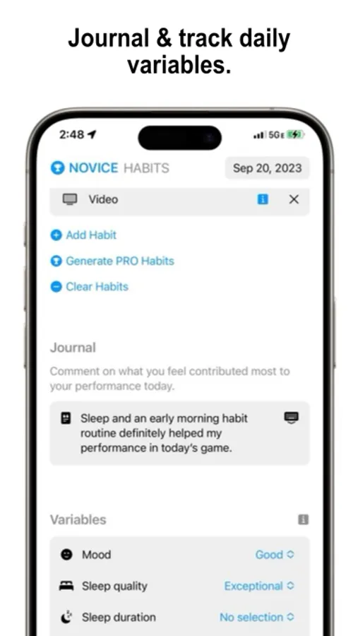 Athlete Habits was built to give you the tools to fully realize your performance. Our app allows you to build simple and effective habits and journaling methods to organize and track your process.